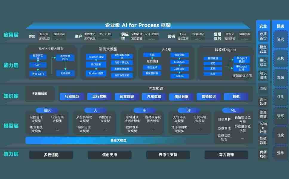 端到端的一站式AI工作空间深度融合了从企业战略规划到日常经营的全流程业务板块,,,,定向解决车企内部领域多、、部门多、、链条长、、、场景碎片化等难题,,,支持车企快速构建以AI为核心的生产力写作体系,,,,实现任务执行与AI能力的无缝集成与交互